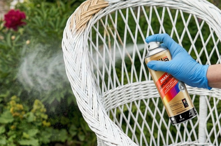 Плетёной мебели также можно придать цвет и обновить внешний вид с помощью аэрозольной краски. На эти цели уйдёт от одного до трёх баллончиков Sila и Ultima, в зависимости от размера мебели.