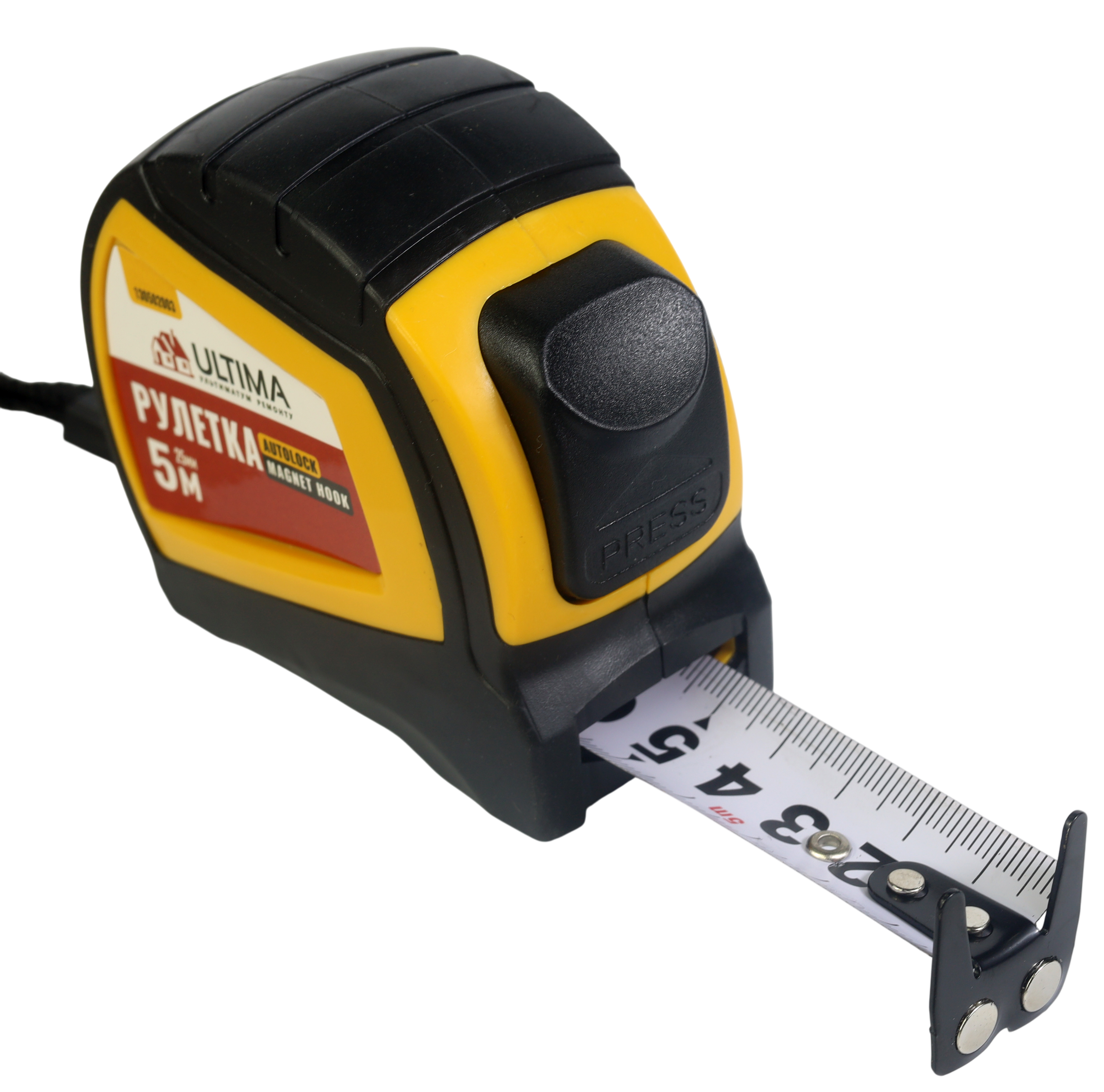 Рулетка Autolock Magnet Hook оснащена износостойким полотном, что вместе с обрезиненным корпусом обеспечивает больший срок службы инструмента. Функция автостоп облегчает замеры, а благодаря двойному магнитному зацепу и двухсторонней шкале рулеткой удобно пользоваться при измерении высоких объектов, стен, потолков.