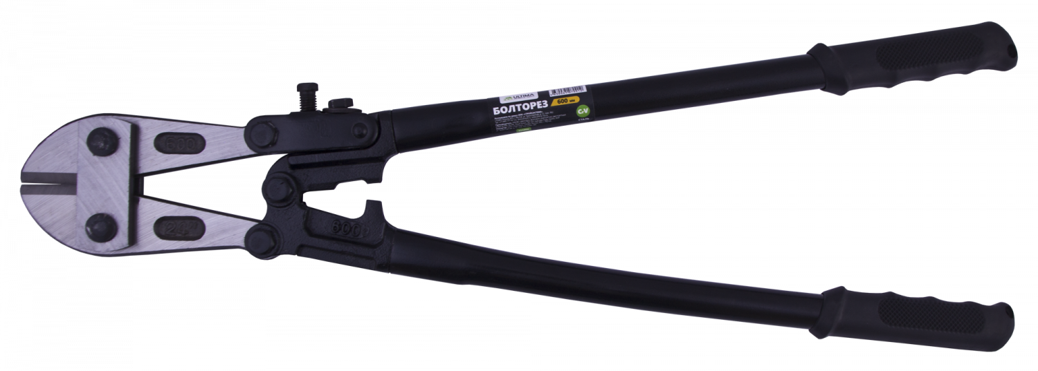 Болторез изготовлен из стали CrV, режущие кромки рабочих губок закалены до твердости 58-60 HRc. Имеет двойной рычажный механизм, облегчающий перекусывание. Инструмент используется для перекусывания стальной проволоки, болтов и арматурных стержней.