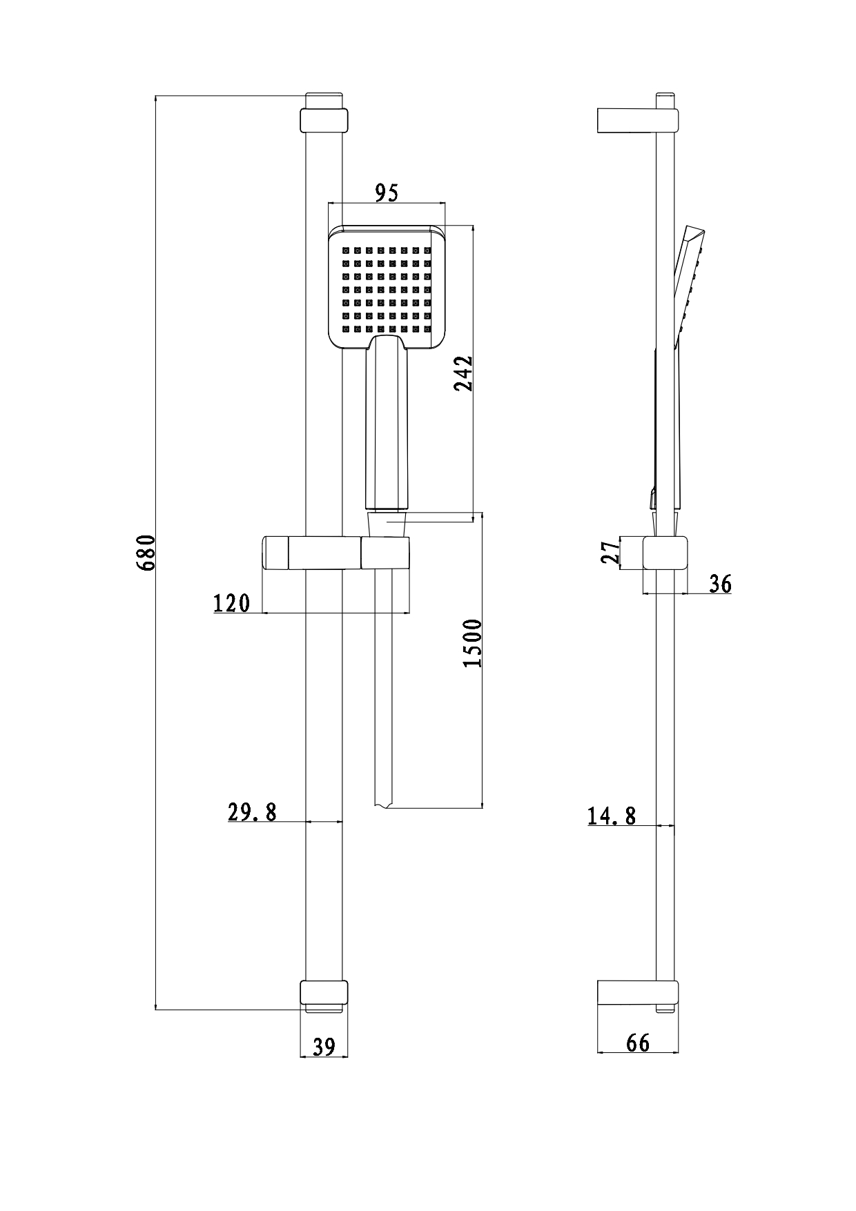 Душевая лейка квадратной формы (размер 95×95 мм) оснащен множеством мелких форсунок, обеспечивающих равномерное и мягкое распределение воды. Наслаждайтесь расслабляющим душем под обильным потоком воды, который прекрасно смывает гель или шампунь. Длина душевого шланга составляет 1500 мм, что позволяет свободно перемещаться во время водных процедур.