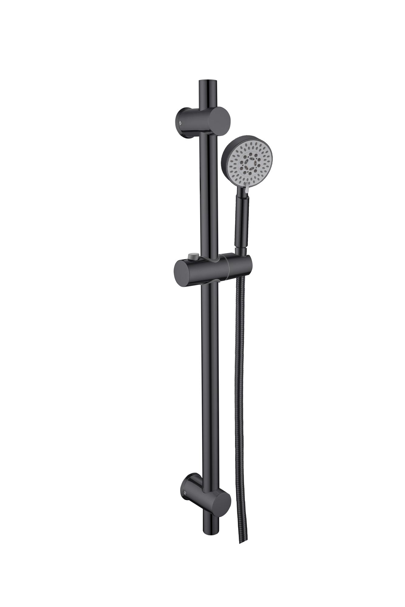 Душевой гарнитур BD04B выполнен в черном цвете и оснащен штангой из нержавеющей стали. Душевая лейка Touch Clean предлагает три режима работы: Soft, Pulse и Soft&Pulse. Шланг длиной 1,5 м изготовлен из усиленного ПВХ с системами Double Lock и No Twist. Диаметр штанги составляет 25 мм, а ее высота — 660 мм. Диаметр лейки — 100 мм.