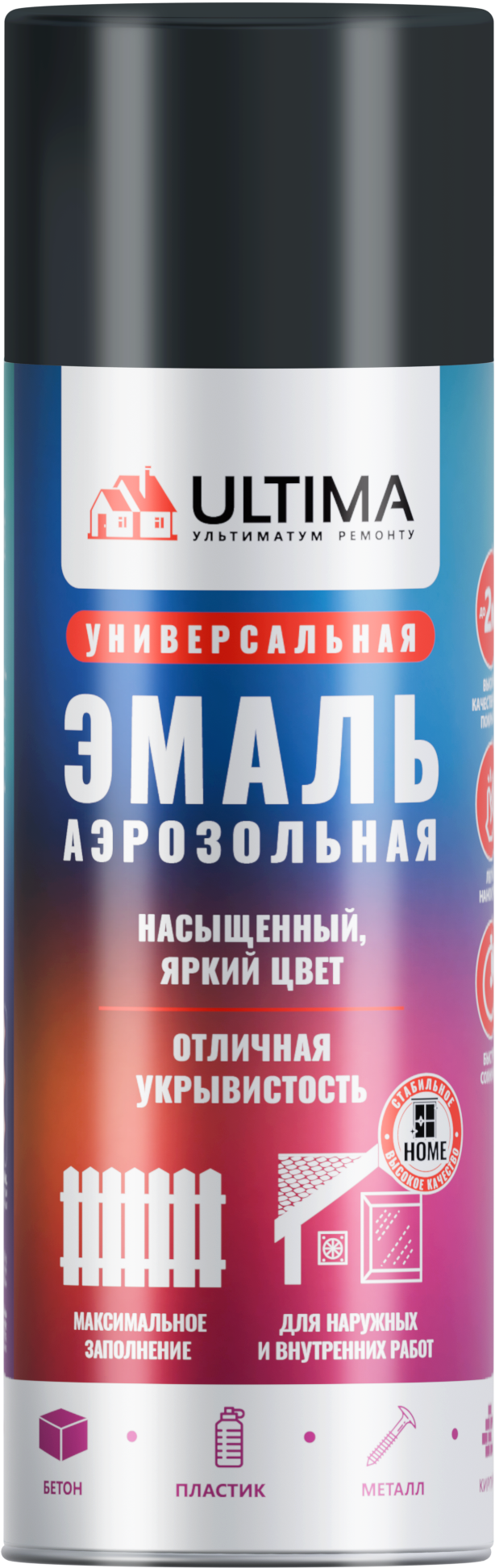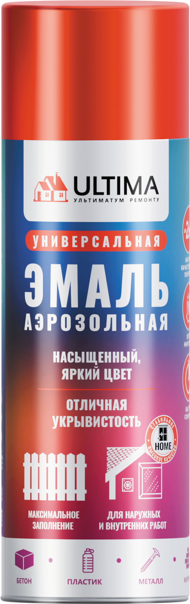 Быстросохнущая акриловая краска ULTIMA в палитре RAL. В аэрозольном баллоне, предназначена для наружных и внутренних работ: