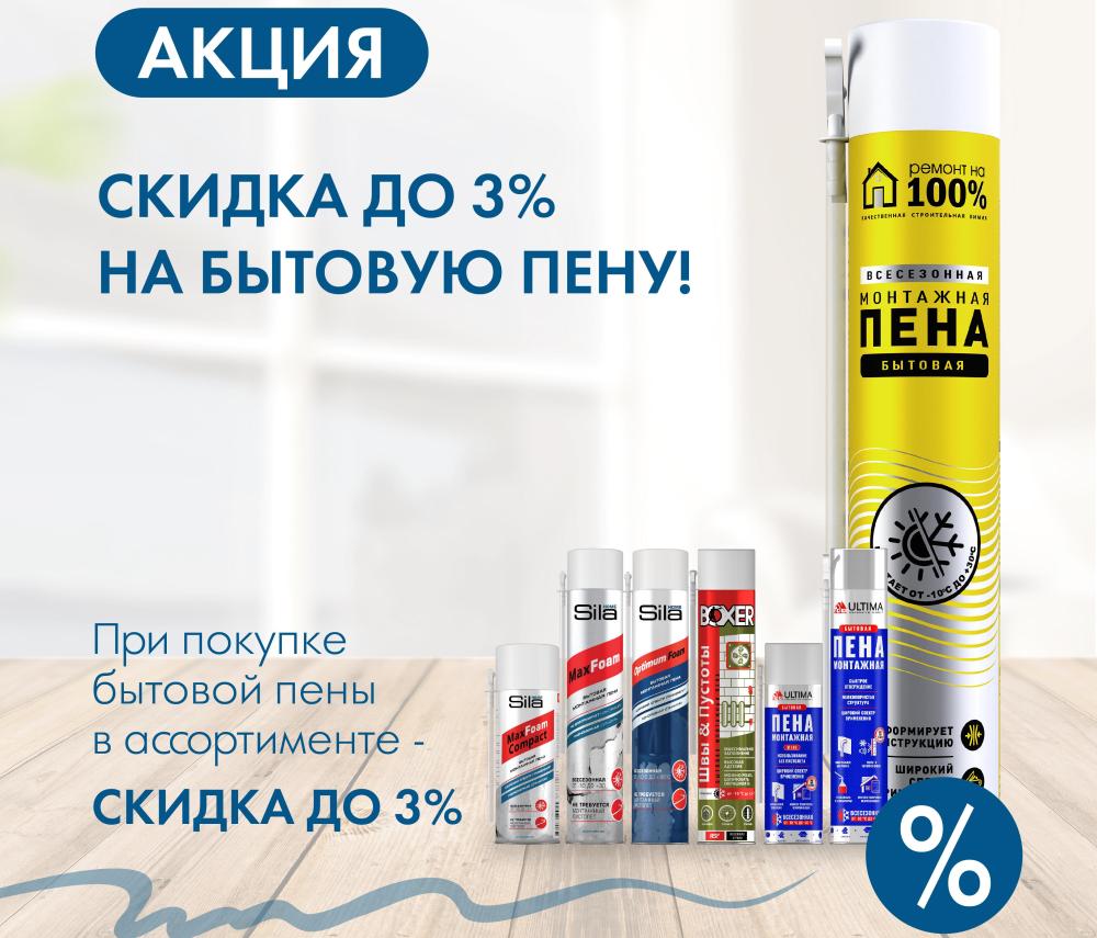 При покупке бытовой пены в ассортименте вы получаете скидку до 3%